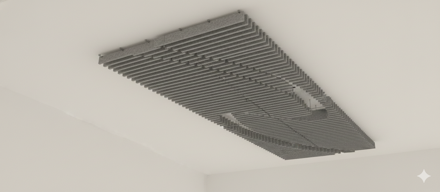 Elegant from every angle, the Aeris Linear Cloud transforms the ceiling into a quiet architectural statement—functional, lightweight, and visually calm.